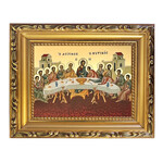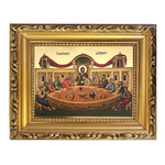 X4669 Last Supper - Gold Gilded Byzantine Greek Icon - in Wooden Frame Decorated With Crosses Comes With Stand For Standing and Hook For Hanging on Wall 7 1/4"x5 3/4"