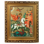 84 Saint George - Gold Foil Icon in Wooden Frame - Wall Hanging With Stand 7 3/4 Inch tall