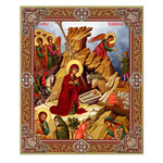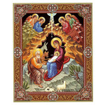 J-120 Nativity of Christ Icon With Angels - Gold Foil - Arched Icon With It's Standing and Hole For Hanging 4 1/16 Inch
