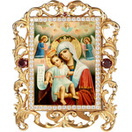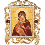 M-35-102s Virgin of Vladimir Jeweled Framed Icon With Crown and Cross - With its Stand and Small Chain for Hanging - Gift Boxed