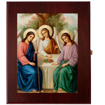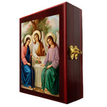 HB107 Holy Trinity Framed in WALL Hanging Or TABLE Box - Prayer Ropes, Beads, Jewelry Prayer Cards Anything Sacred 7 1/2 Inch