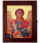 HB66 Saint Michael Framed in WALL Hanging Or TABLE Box - Prayer Ropes, Beads, Jewelry Prayer Cards Anything Sacred 7 1/2 Inch