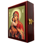 HB81 Virgin Mary Feodorovskaya Icon Framed in WALL Hanging Or TABLE Box - Prayer Ropes, Beads, Jewelry Prayer Cards Anything Sacred 7 1/2 Inch