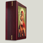 BOX-31 Crucifixion With Four Virgin Mary Wooden Icon Box - Keepsake Box For Prayer Beads, Rosary, Jewelry - Lined With Velvet - High Quality - Religious Gift Idea 5 1/16"
