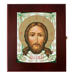 HB89 Jesus Christ Image Made Without Hands Veronica's Veil Icon Framed in WALL Hanging Or TABLE Box - Prayer Ropes, Beads, Jewelry Prayer Cards Anything Sacred 7 1/2 Inch