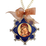 IF-3R-102s Virgin of Vladimir Faberge Style Icon Pendant - For Room, Car, Christmas Tree - Gift Boxed W Chain 3 Inch