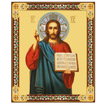 M-38-101s Christ The Teacher Icon Framed In Jeweled Frame, Decorated With Faux Crystals, 4 Inch