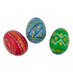 7012-3 Set of 3 Colorful Ukranian Pysanky Hand Painted Wooden Eggs