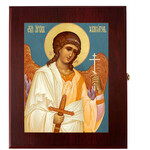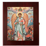 HB63 Archangel Raphael Icon Framed in WALL Hanging Or TABLE Box - Prayer Ropes, Beads, Jewelry Prayer Cards Anything Sacred 7 1/2 Inch