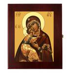 HB98 Virgin of Vladimir Gold Foil Icon Framed in WALL Hanging Or TABLE Box - Prayer Ropes, Beads, Jewelry Prayer Cards Anything Sacred - Catholic Icon 7 1/2 Inch