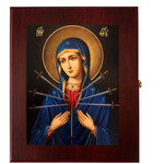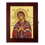 HBX5234 Seven Swords, Our Lady of Sorrows - Gilded Greek Icon in WALL Hanging Or TABLE Box - Prayer Ropes, Beads, Jewelry Prayer Cards Anything Sacred - Catholic Orthodox icon Icon 7 1/2 Inch Wall