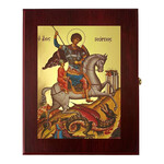 HBX4520 Saint George Icon - Gold Gilded in WALL Hanging Or TABLE Box - Prayer Ropes, Beads, Jewelry Prayer Cards Anything Sacred - Catholic Orthodox Icon 7 1/2 Inch Wall