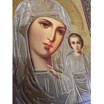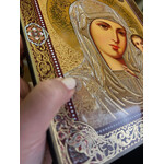 JC124-XL Virgin of Kazan - Gold Foil Wooden Icon 9 3/8"x8" inch, Wall Hanging & Standing
