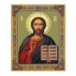 JC125-XL Christ The Teacher - Gold Foil Wooden Icon 9 3/8"x8" inch, Wall Hanging & Standing