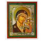 PC-28 Virgin OF Kazan Laminated Gold Foil Prayer Cards - Pack of 6 - Laminated - 3 1/4 Inch x 2 1/4 Inch