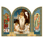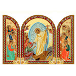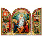 TR-22-7012-3 Triptych and Pysanky Eggs - Resurrection of Christ - On The Doors Feast Days of Christ 6 1/4 Inch tall & 3 Handmade Pysanky Eggs