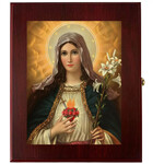HB71 Immaculate Heart of Mary Icon Framed in WALL Hanging Or TABLE Box - Prayer Ropes, Beads, Jewelry Prayer Cards Anything Sacred 7 1/2 Inch