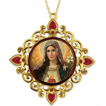 M-37-71S Immaculate Heart of Mary Sacred Heart Icon Christmas Ornament - Icon Set In a Jeweled Frame, Decorated With Faux Crystals, 4 Inch