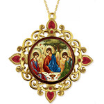 M-37-21S Holy Trinity Icon Christmas Ornament - Icon Set In an Enameled Jeweled Frame, Decorated With Faux Crystals, 4 Inch