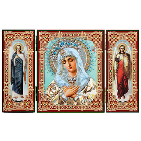 TR-12-S Extreme Humility Virgin Mary Triptych With Archangels Michael and Gabriel - Gold Foil - Wooden 3 1/4 inch