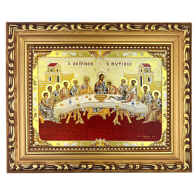 XX4531 Last Supper - Gold Gilded Byzantine Greek Icon - in Wooden Frame With Stand 7 1/4"x5 3/4"