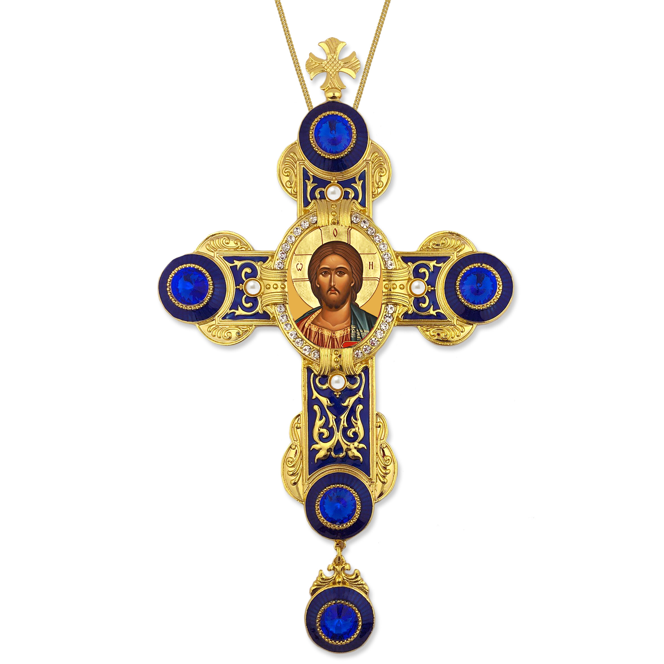 Inspired after a traditional lobed Greek styled Cross this Cross with its blue enamel and crystals conveys the peace we find in Christ’s creation as well as in God’s creation of the sea and sky!