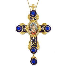 Cross with its blue enamel and crystals conveys the peace we find in Christ’s