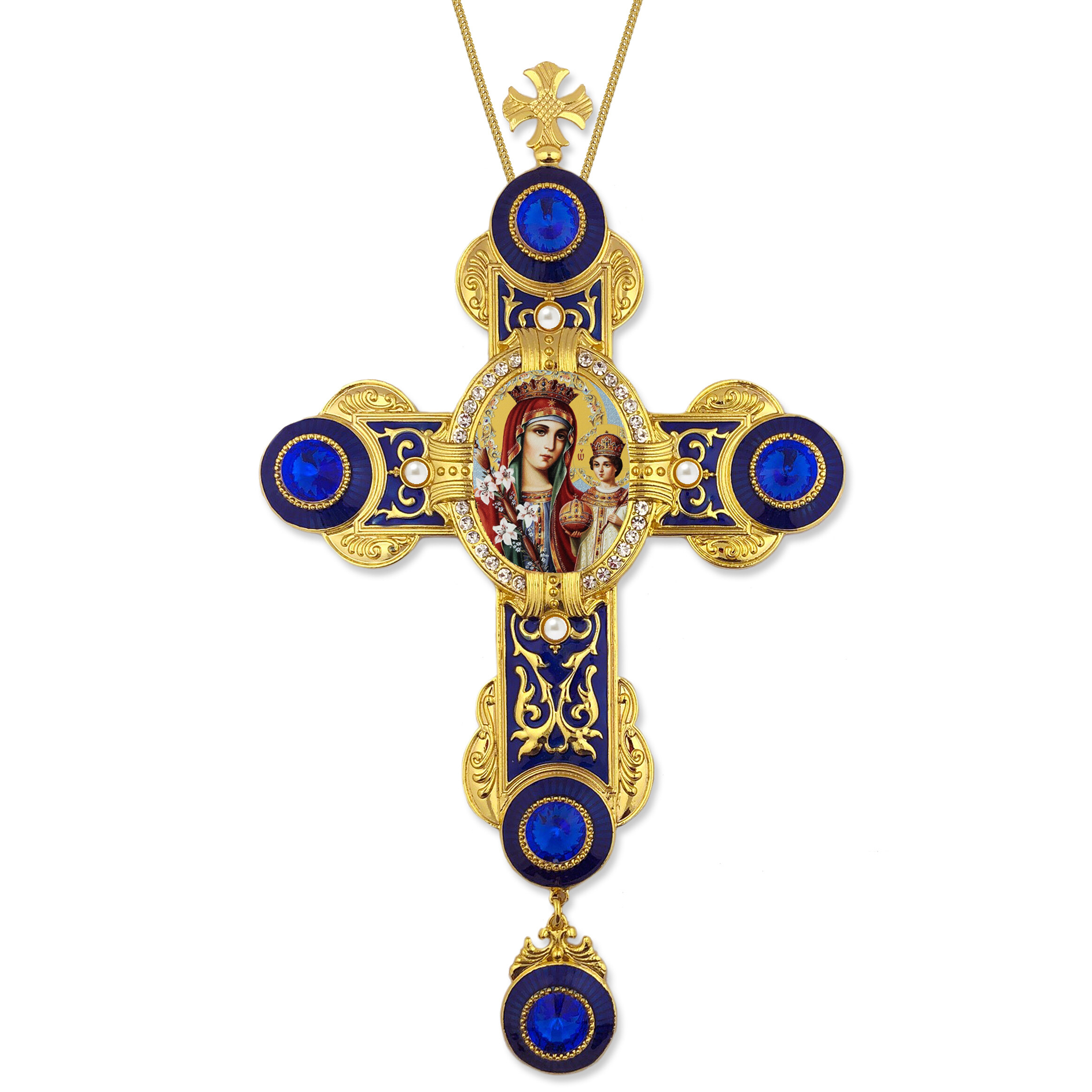 Inspired after a traditional lobed Greek styled Cross this Cross with its blue enamel and crystals conveys the peace we find in Christ’s creation as well as in God’s creation of the sea and sky!