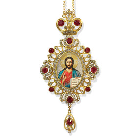 M-19-8 Christ The Teacher Icon Pendant With Red Stones Religious Gift Wall Room Decoration