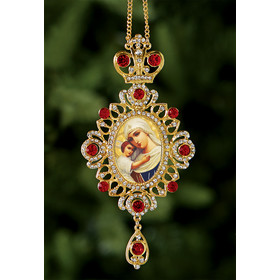 M-19-71 Madonna and Child Icon Pendant With Red Stones - Religious Gift - Wall Room Car Christmas Decoration