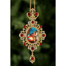 M-19-62 Nativity of Christ Icon Pendant With Red Stones Religious Gift - Wall Room Car Christmas Decoration