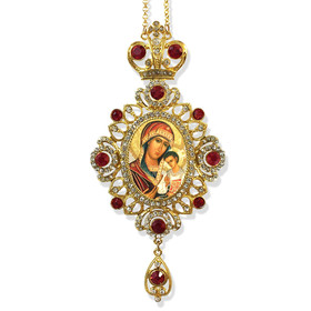 M-19-78 Madonna and Child Icon Pendant With Red Stones Religious Gift Wall Room Decoration