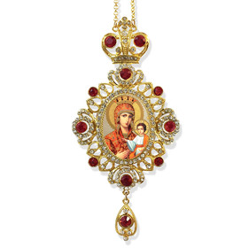M-19-81 Madonna and Child Icon Pendant With Red Stones Religious Gift Wall Room Decoration 6 inch