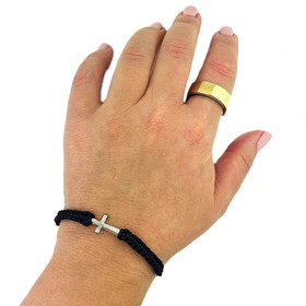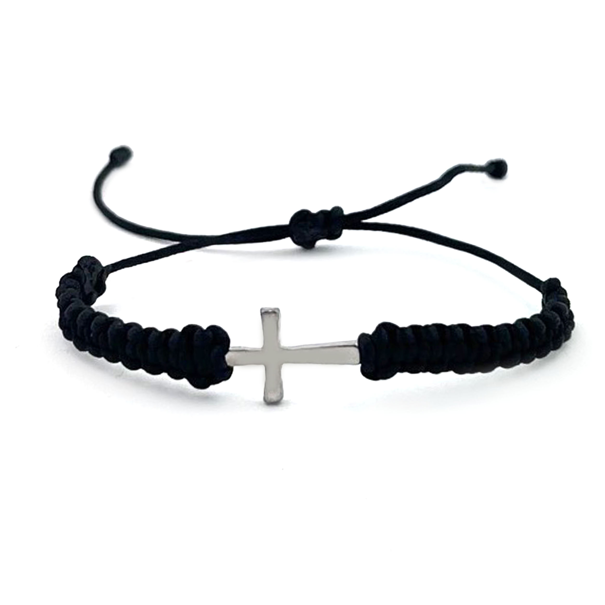 CS32 Cross Bracelet - Black - Prayer Bracelet -Handmade Made in Lebanon - Adjustable Fits All - Unisex