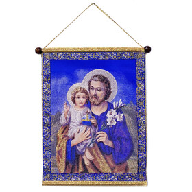 TH-30 Saint Joseph Tapestry Icon, 14 Inch Tall Including Hanger Part