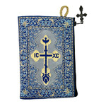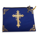 CP-24 Tapestry Cloth Pouch For Your Religious Jewelry Rosary - With Cross - Blue With Gold - 2 3/4 inch tall x 3 inch wide
