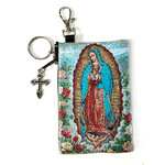 TIP61 Our Lady Of Guadalupe - Tapestry Cloth Rosary Key Chain Coin Holder Case Pouch 4 3/4 Inch Width REVERSIBLE