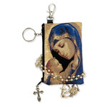 TIP73 Madonna and Child - Reversible - Tapestry Cloth Rosary Key Chain Coin Holder Case Pouch 4 3/4 Inch Width