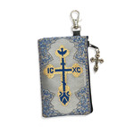 CP-20 Byzantine Cross IC XC Tapestry Prayer Beads, Rosary, Keepsake Pouch Case Holder Purple 5 3/8"x4"
