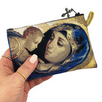 TIP4 Madonna & Child Virgin Mary Tapestry Rosary Icon Pouch - Madonna in Blue 5 3/8"x4"