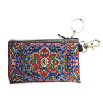 CP-16 Flower Tapestry Cloth Key Chain Coin Rosary Holder Case Pouch 4 3/4 Inch Width