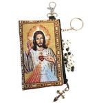 TIP63 Devine Mercy - Reversible - Tapestry Cloth Rosary Key Chain Coin Holder Case Pouch 4 3/4 Inch Width