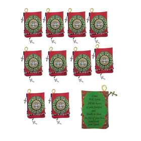 This beautiful pouch is an interpretation of Gian Lorenzo Bernini's famed "Dove of the Holy Spirit" amber stained alabaster window of The Cathedra Petri (Throne of St Peter)in St Peter's Basilica (Vatican, Rome). See the light (gold) rays from the Dove shift from light to darker representing God the Holy Spirit as the source of light. The image of the Dove is set on a red (traditional color of the Holy Spirit) pouch surrounded by a green (traditional color in the East for Holy Spirit protector of the environment) nimbus.