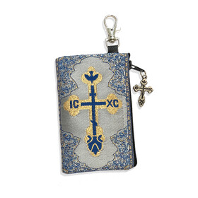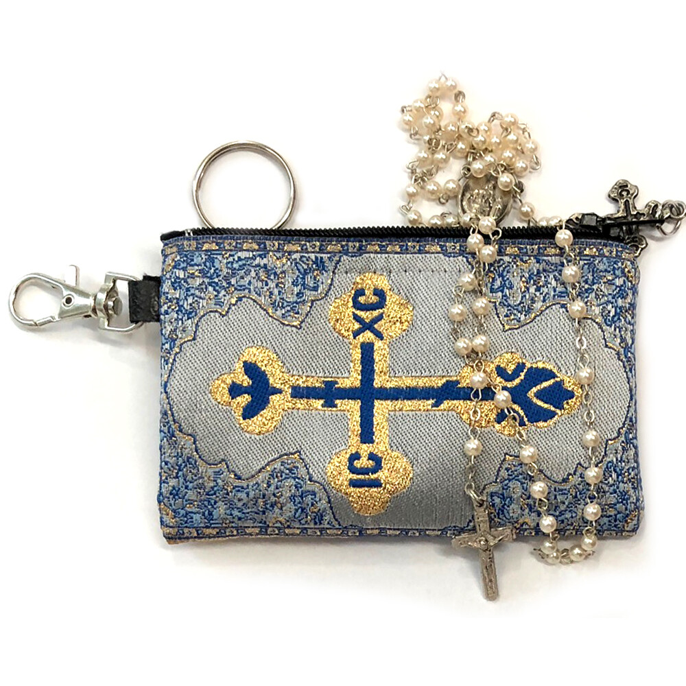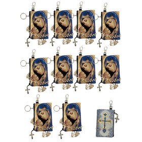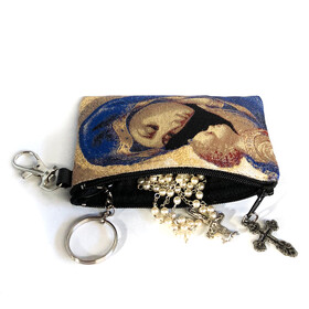 TIP73-10 SET OF 10 POUCHES FOR PRICE OF 6 - TEMPORARY SALE - Madonna and Child - Reversible - Tapestry Cloth Rosary Key Chain Coin Holder Case Pouch 4 3/4 Inch Width