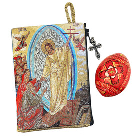 This beautifully pouch displays the Resurrection Icon on the front and bible verse on the back, making it a meaningful keepsake for prayer and reflection.