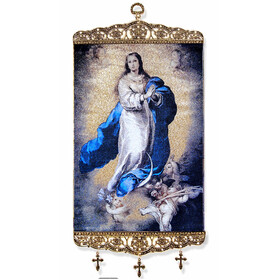 TL21 Mary Immaculate Large Tapestry Banner W 3 Hanging Crosses Wall Room Door Decoration 17"x8"