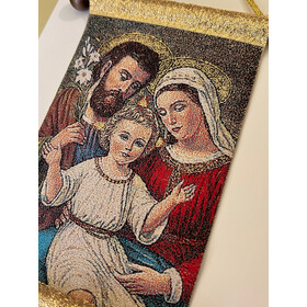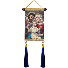 TE-2 Holy Family Tapestry Icon - With Tassels and Faux Pearls - 13 1/2 Inch
