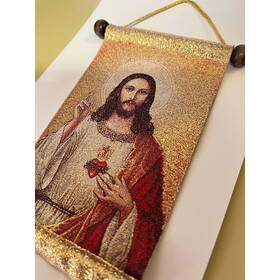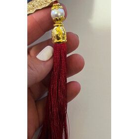 Beautiful tapestry icon with tassels and faux pearls