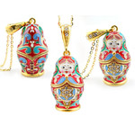 8760-B Matryoshka Enamel Russian Doll Pendant Sterling Silver 925 Gold Plated & Enameled NEW