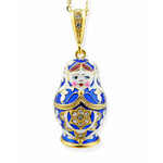 8760-BB Matryoshka Enamel Russian Doll Pendant Sterling Silver 925 Gold Plated & Enameled NEW